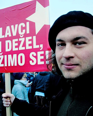@Ajdemi, gre za spornost v njegovi izjavi in ali legalnost in legitimnost njegovega transparenta. Mladenič ni niti v eni točki v nasprotju s standardi razvite demokracije. Je toliko mlad, da ni živel radosti prejšnjega sistema, je bil povabljen, je član opozicije, je zagovornik pravic delavskega gibanja, je povedal svoje mnenje. Marsikdo, ki ima dovolj pod palcem, da si poravna izdatek letovanje na Kubi, se s Kube vrne zadovoljen.
