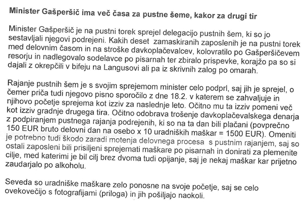 Pa dobr no, kaj če se malo pozabavajo na tak dan. Večkrat bi se morali ne pa da so vsi zategnjeni. Še drugod ne samo na tem ministrstvu.