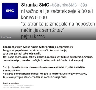 Zato pa rdečuharji sovražijo FB in TW, ker je tale tvit včeraj na veliko krožil po FB in TW in je pokazal pravi obraz SMC, ki ga skrivajo za lažno etiko in lažno moralo.