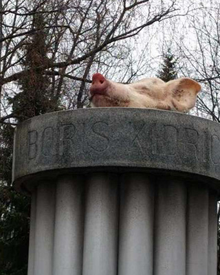 Ni sramota, da se je svinjska glava znašla na spomeniku Borisu Kidriču. Sramota je, da spomenik sploh še stoji. Sicer so pa zaradi Borisa Kidriča lahko užaljni vsi prašiči, ker so jih zlorabili za takega zločinca.