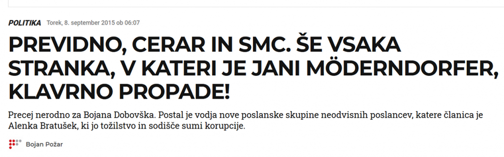 Zato danes, skoraj pet let kasneje, ko nadomestni poslanec Jani Möderndorfer znova prestopa, tokrat iz Počivalškove SMC v Šarčevo LMŠ (več na tej povezavi), lahko samo zapišemo: Ta članek se pa res prekleto dobro stara.
