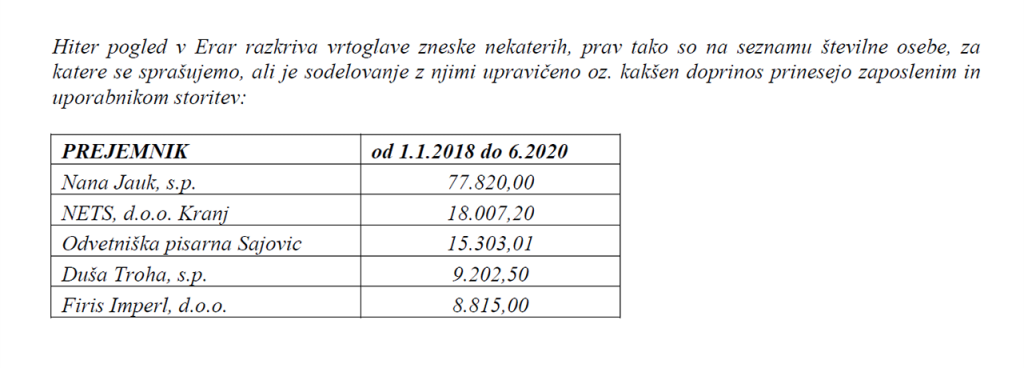 Vse je jasno, vse je čisto: "Mojca Faganel, ki je sicer zaposlena na Ministrstvu za delo, družino, socialne zadeve in enake možnosti, in je hkrati svetnica v Svetu Doma in občinska svetnica, je podala repliko g. Resmanu in sicer je navedla: »Dom, če se je znašel v rdečih številkah, se je znašel v rdečih številkah zato, ker ene stvari prejšnja direktorica ni plačala in jih bo v bistvu zdejšnji direktor mogu poplačat. In za te stvari ki jih bo direktor zdej moral poplačat ima očitno presežek denarja na svojem računu, ker mu Ministrstvo ne bo odobrilo kredita, ker je to Dom, ki ima veliko več denarja kot vsi ostali domovi po Sloveniji.« Po naših podatkih ga. Faganel zasebno prijateljuje z g. Grilom, zato ne čudi njena podpora. Glede na navedeno, da Dom dobro stoji, se zaposleni sprašujemo, zakaj smo regres prejeli šele 22. 06. 2020, glede..." To se dogaja po celi Sloveniji, na vseh področjih...