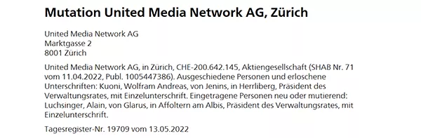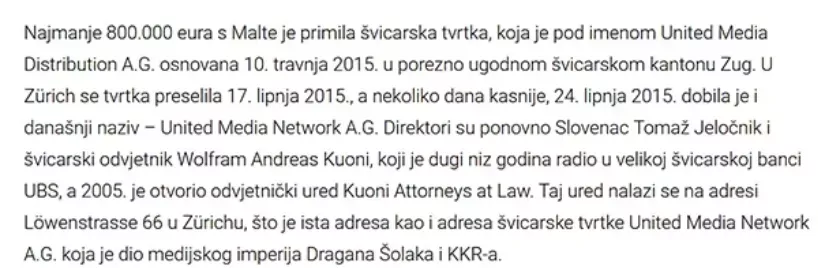 Kuoni je bil namreč podpredsednik švicarsko-ruske Gazprom banke (vir), do maja 2022, torej tudi več mesecev po napadu Rusije na Ukrajino, pa je Kuoni še delal kot predsednik odbora Šolakove United Media: