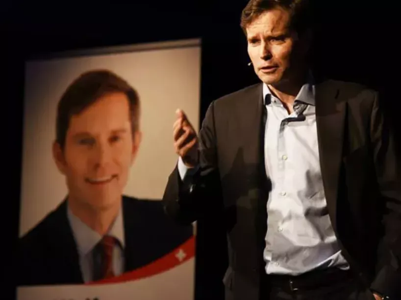 Wolfram Kuoni med volilno kampanjo za švicarski parlament. (vir: Facebook)